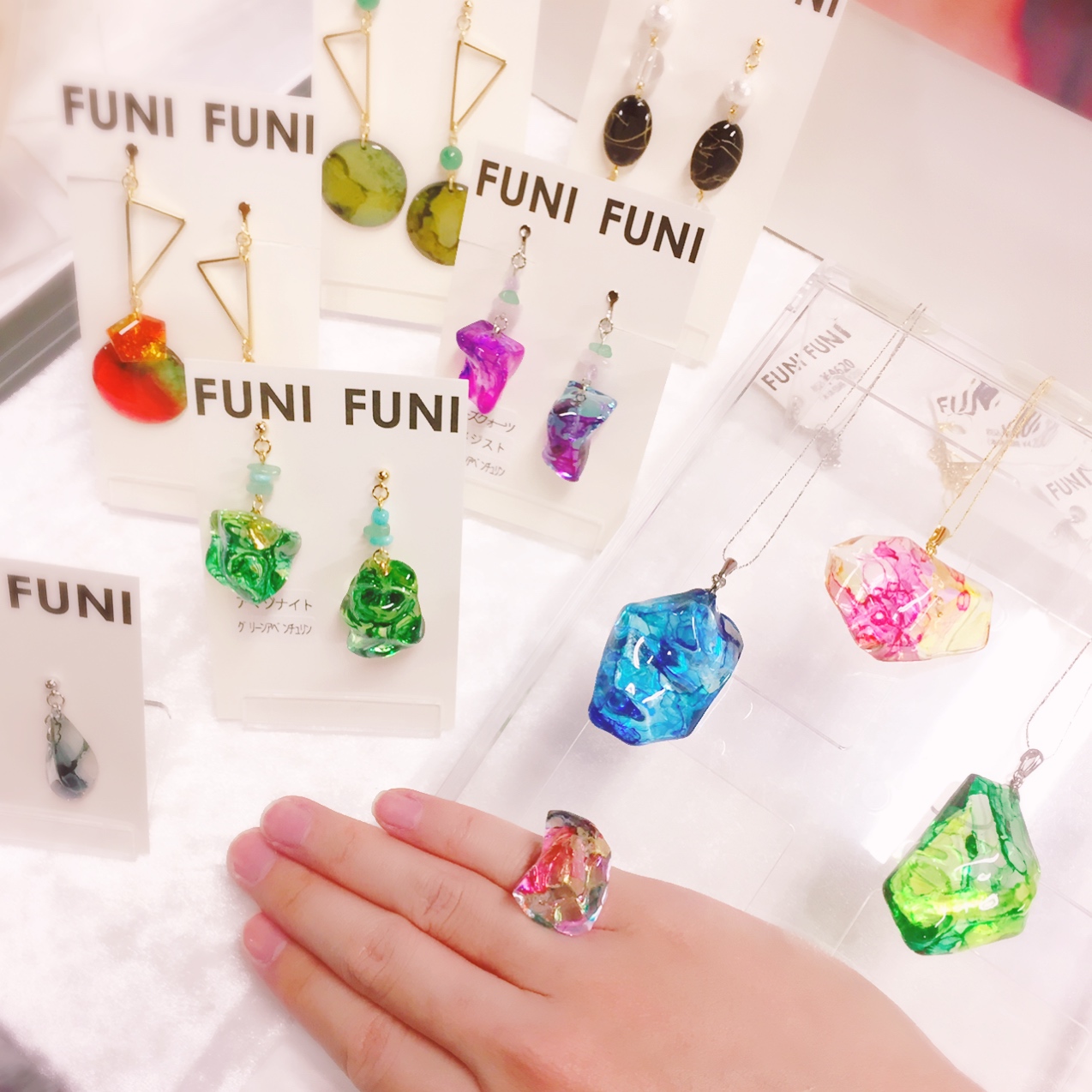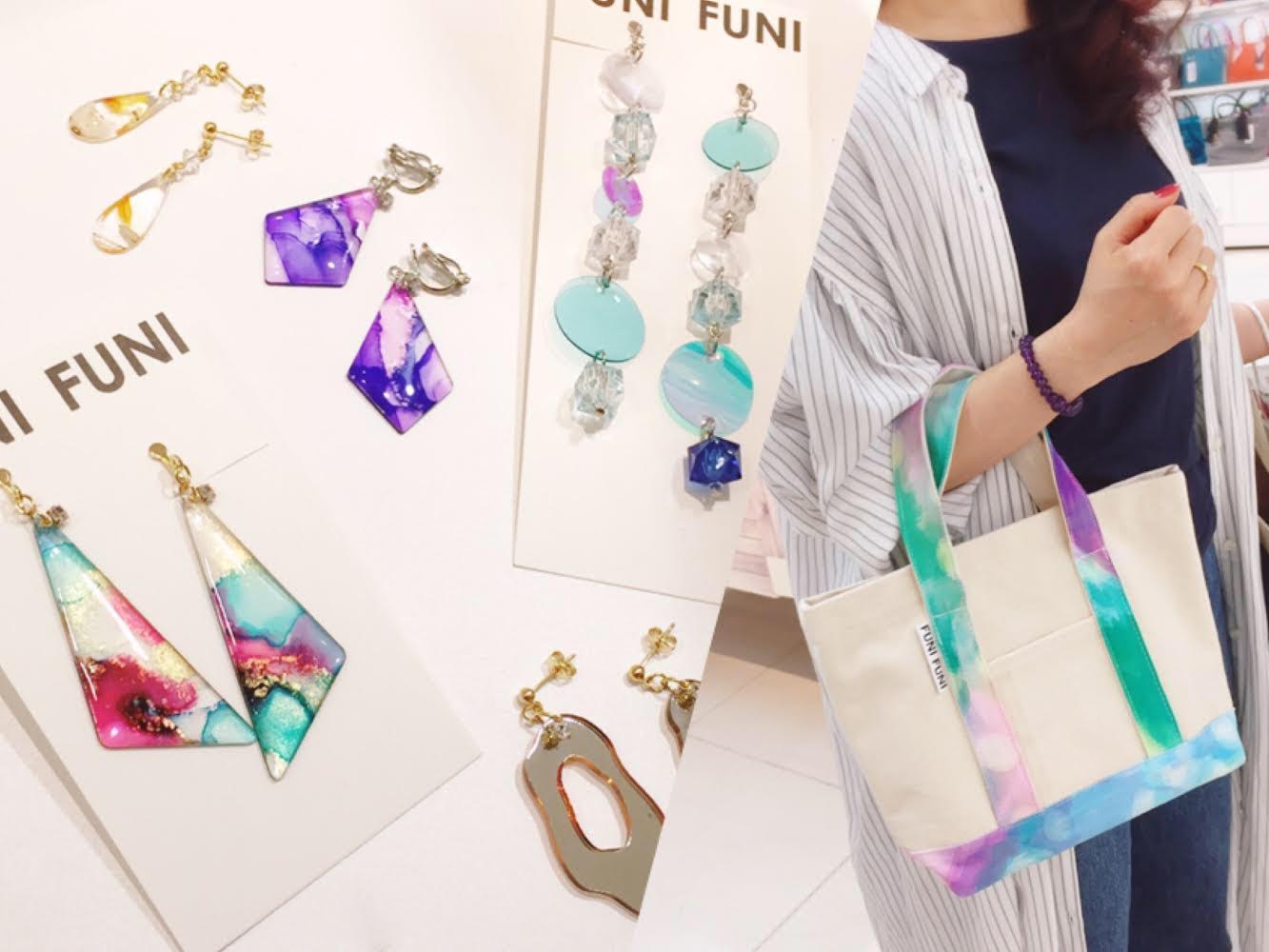 2人のデザイナーが描いた絵(柄)を使い カラフルなアクセサリーや バッグやヘアアクセサリーなどを 製作しております。 アクセサリーはその他 さまざまな素材を使用し、 シンプルで使いやすいものから 特別感あふれる一点物など 幅広いデザインを展開しております。